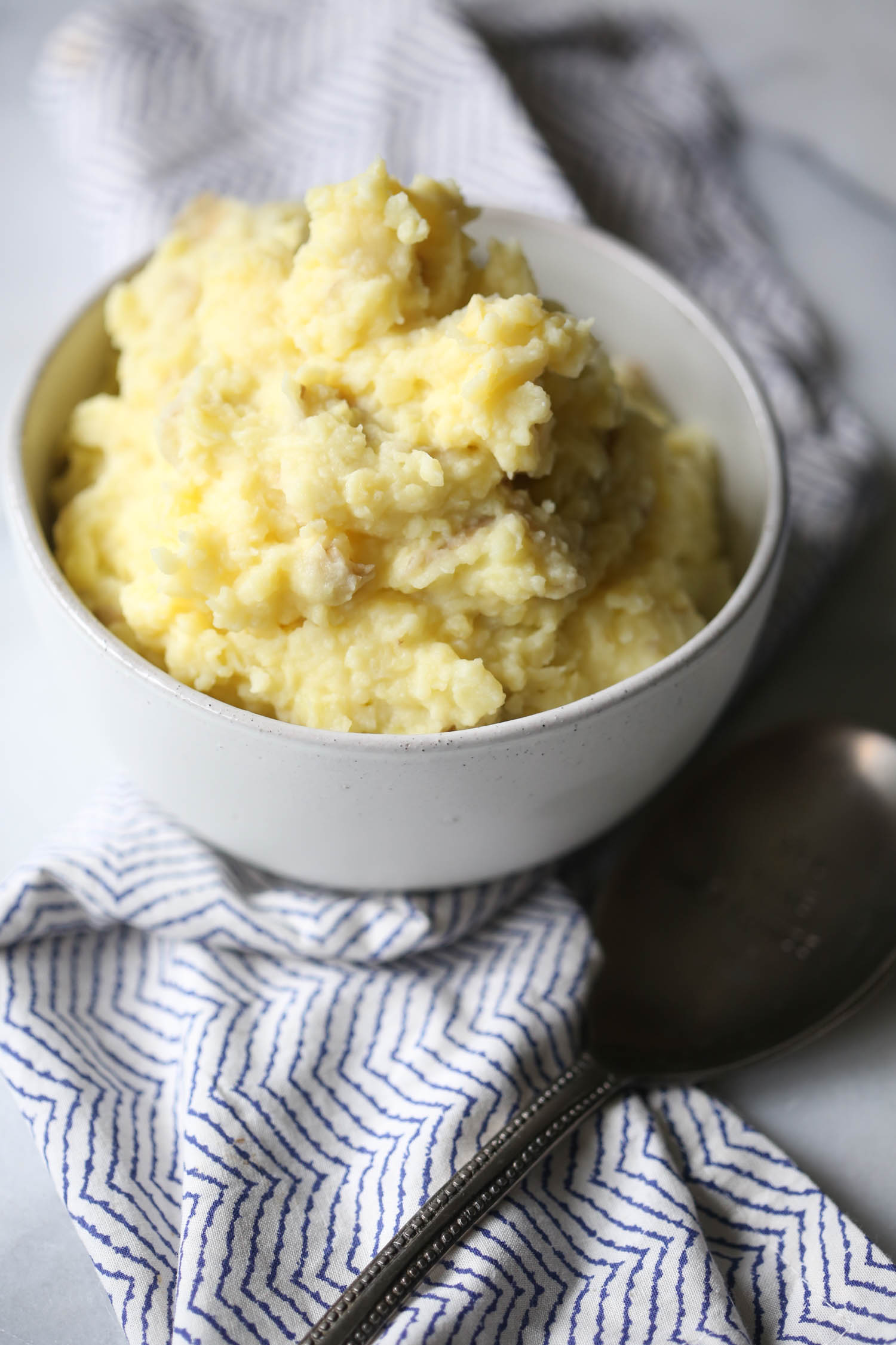 If you don’t like the texture of smashed potatoes, I recommend using a recipe for smooth mashed potatoes like these Pressure Cooker & Slow Cooker Mashed Potatoes.