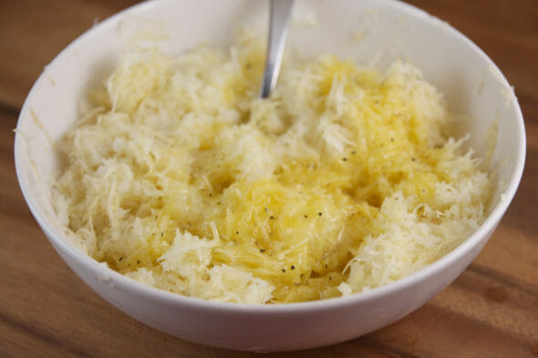 - Drain your potato shreds and place both the potatoes and onions in a tea towel or onto a few layers of cheese cloth. Squeeze out all of the excess liquid.