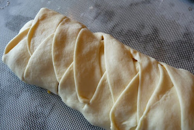 • Bake according to package instructions. I believe it’s 375 for about 15-20 minutes (but who knows, I threw away my package!) It might take a little longer than the package directs because of the way it’s braided. When it’s done, it should be golden brown on top. Remove from oven and let cool for about 5 minutes.