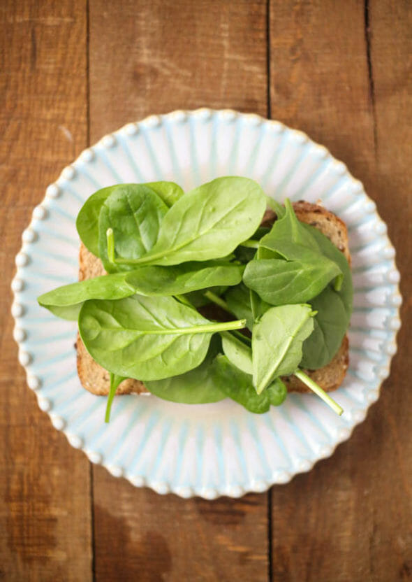 - Grab your toast and line it with spinach leaves. Top with your egg salad, sprinkle with additional salt, pepper, and green onions, and enjoy! I usually eat this with a couple of clementines or a simple fruit salad.
