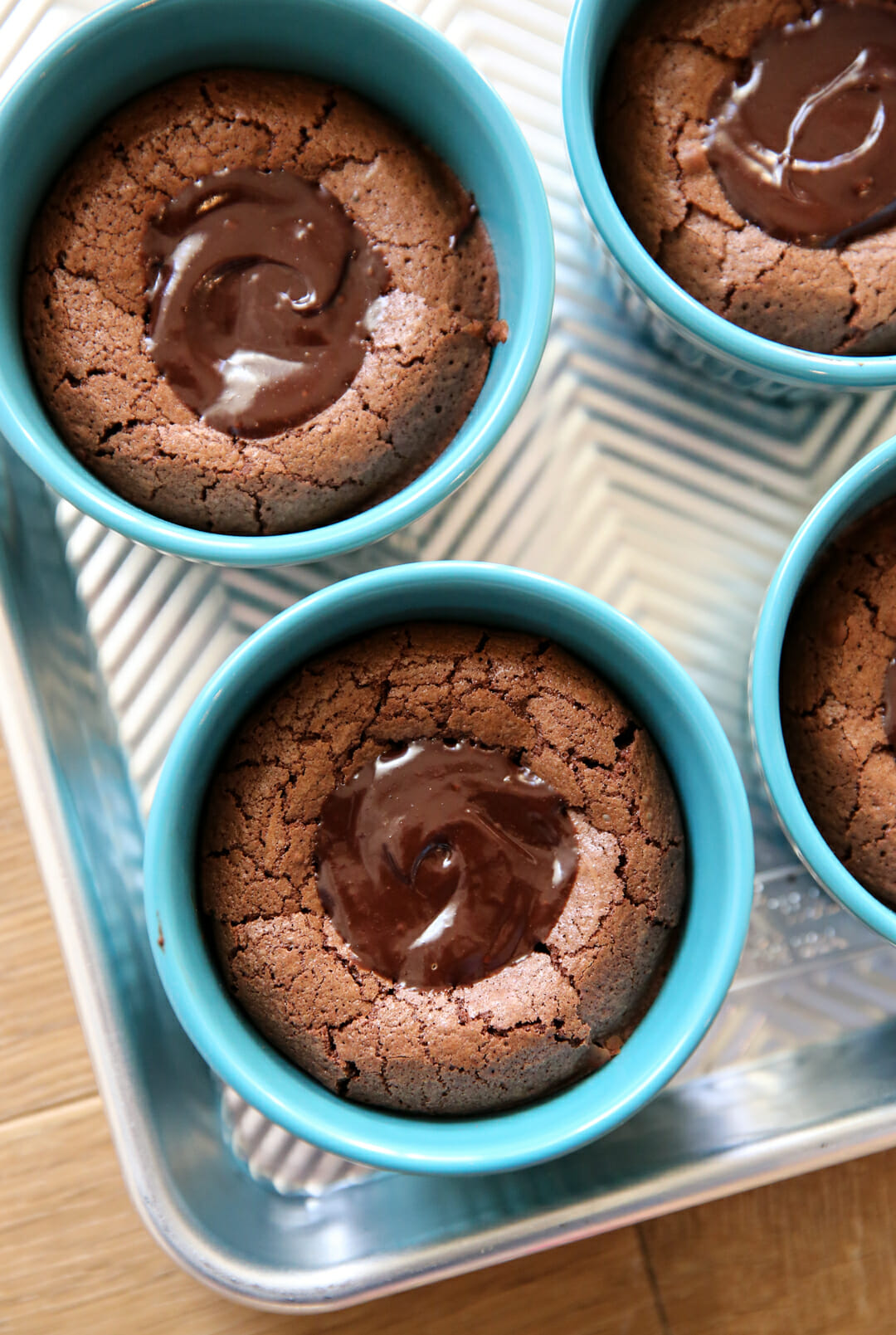 I struggled on what to call these because they’re not really cake- it’s more like a really rich, fudgy brownie, but a little more delicate. In fact it has all the same cast of characters, except for flour. They’re SO decadent.