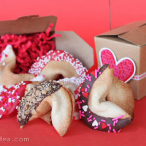 Kiddos: How about tucking a few love-note cookies in your kids school lunches? Ya know, if they’re at that magic age where they think it’s cool and they won’t get beat up for it. My toddler gets SO excited about the little papers inside and he can’t even read. I just put his name in a bunch of them because he can recognize that and he’s completely floored that the cookie knew his name.