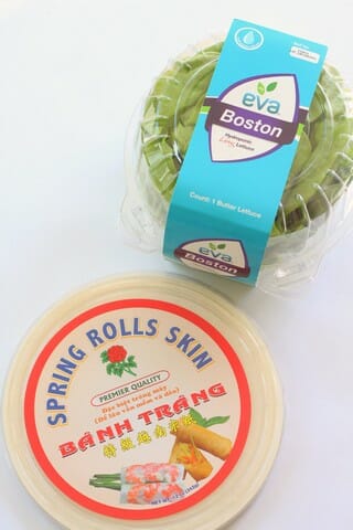 First, you’re going to need something to wrap them in. You can do them in spring roll wrappers or you can just wrap them in butter lettuce if you’re watching your carbs.