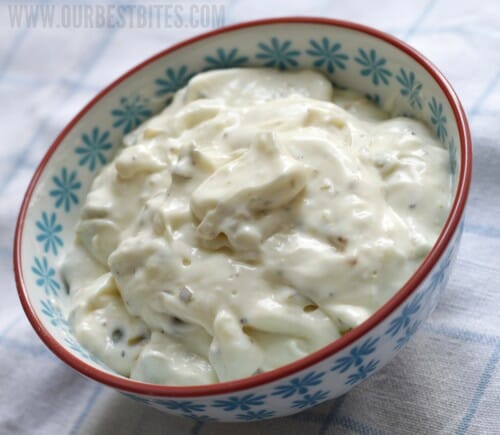 Spread onto sandwiches or use as a dip for fries, veggies, chicken, or fish. Or whatever sounds good (because garlicky mayonnaise sounds good with an abnormally large number of food items, at least for me).
