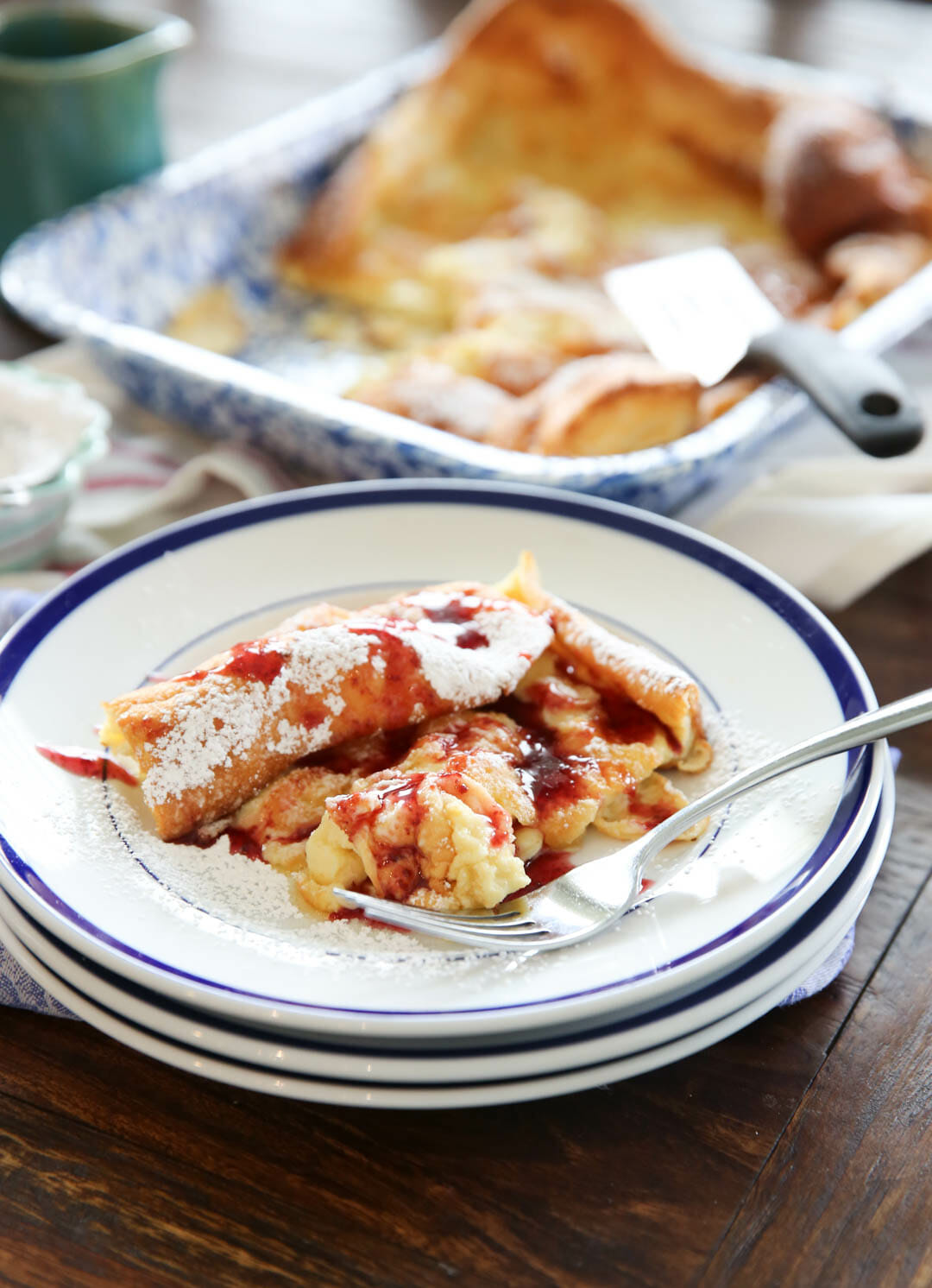 I love German Pancakes…we have had lots of snow here in the NW. Love the fruit. Sometimes a little lemon juice on them with the powdered sugar is delicious.