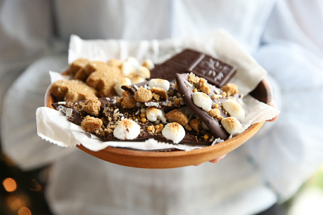 When it’s all cooled, gently break into chunks! This reminds me of a really elevated holiday s’more!