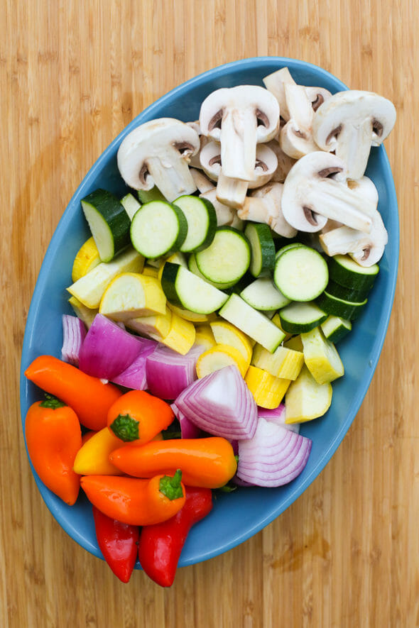 - Your Favorite Veggies For Grilling – zucchini, yellow squash, onion, peppers, mushrooms, eggplant, etc.
