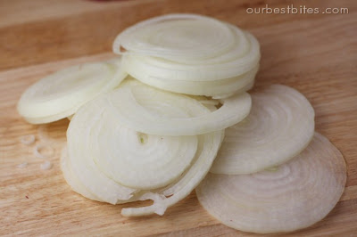 Slice onions about 1/8″ thick