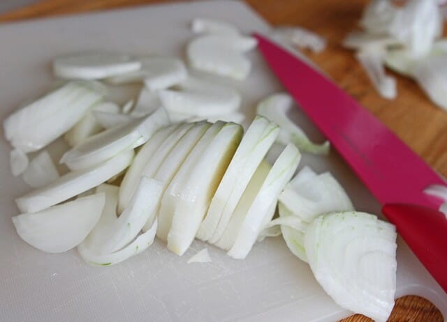 - 1 large white onion vertically sliced (about 1 1/2 cups)