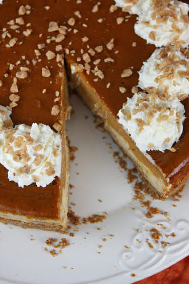 Layered Pumpkin Pie Toffee Cheesecake
