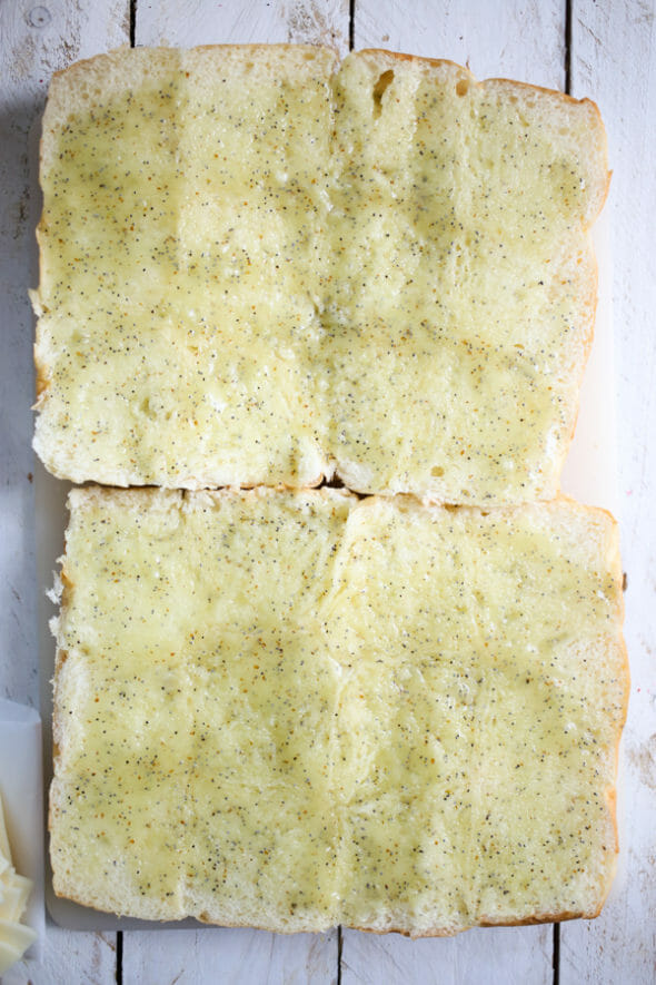 - Melt the butter and whisk in the poppy seeds, dehydrated onion, and mustard. Spread it evenly over the rolls. Cover with aluminum foil and bake for about 20 minutes or until the cheese is melted. Remove from oven and allow to stand for 2-3 minutes before serving.