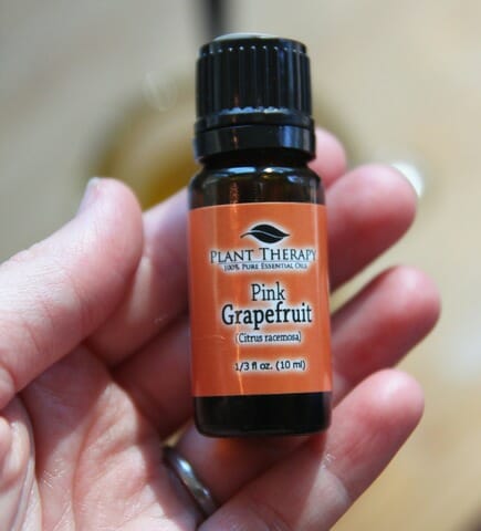 Heat the measuring cup for 30 seconds at a time, stirring well after each heating (I just used a plastic straw so I could throw it away when I was done) until everything is completely melted (in my microwave, it took about 90 seconds-2 minutes). Now…if you want to make a couple of different flavors from this batch, you could pour some of it into another couple of spouted heat-safe cups and add the oils separately, or you could just flavor the whole batch. For me and my oils and flavors, I ended up needing about 40 drops of grapefruit oil and 17 drops of coconut along with 8 drops of lime flavor. Keep the following things in mind:
