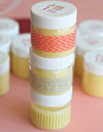 In a microwave-safe glass container with a spout, combine the coconut oil and beeswax. Heat on high for 30 seconds at a time, stirring after each heating, until the beeswax completely melts. You can either flavor all the lip gloss one flavor or pour the mixture into a few smaller containers and mix up smaller batches of different flavors. After you’ve added the desired flavors, pour the mixture into jars, tubes, or tins and allow to cool completely. Decorate as desired.