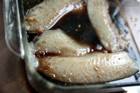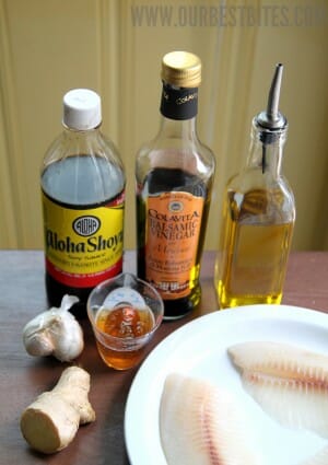 This comes together super quickly because fish doesn’t need to marinate for very long. You’ll need honey, soy sauce, balsamic vinegar, garlic, fresh ginger, olive oil, and 16-24 ounces of your favorite fish (the original recipe called for mahi mahi, but I couldn’t find any mahi mahi, so I used and liked tilapia. I’d bet all my unfolded laundry that salmon, although fishier, would be fabulous.)