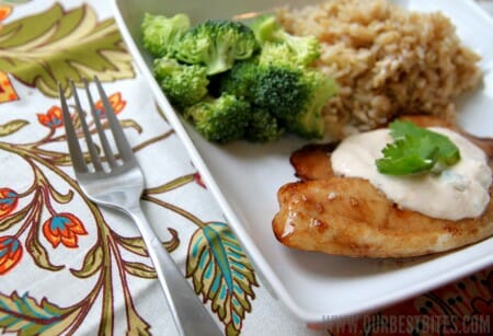 and cook it under the low broiler setting in your oven for 4-6 minutes per side. Serve with brown rice, steamed veggies, and with the creamy dipping sauce.