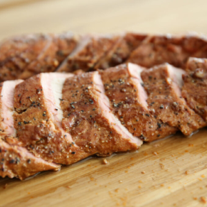 Sometimes when you think smoker recipes, your mind goes straight to big expensive cuts of meat and a minimum 12 hour time commitment. I love smoking pork tenderloin because you don’t have to plan a day in advance; it only takes 2-3 hours to smoke, which is speedy for a smoker! We frequently buy the pork tenderloin from Costco, which comes with packs of 2 tenderloins, which is perfect for this recipe. The result is a flavorful, smoky pork with a light, sweet glaze. If you like our Spicy Honey Chicken recipe, I based this loosely on that flavor combination.