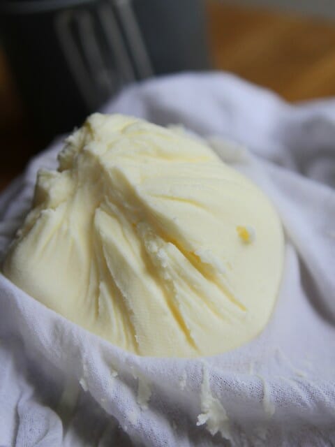 If you’re going the handmade route, you’ll still need to separate the butter from the buttermilk, so just pour it into the cloth the same way.