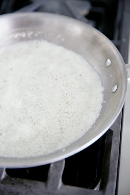 • Continue to cook, slightly simmering, until butter foams, stirring often