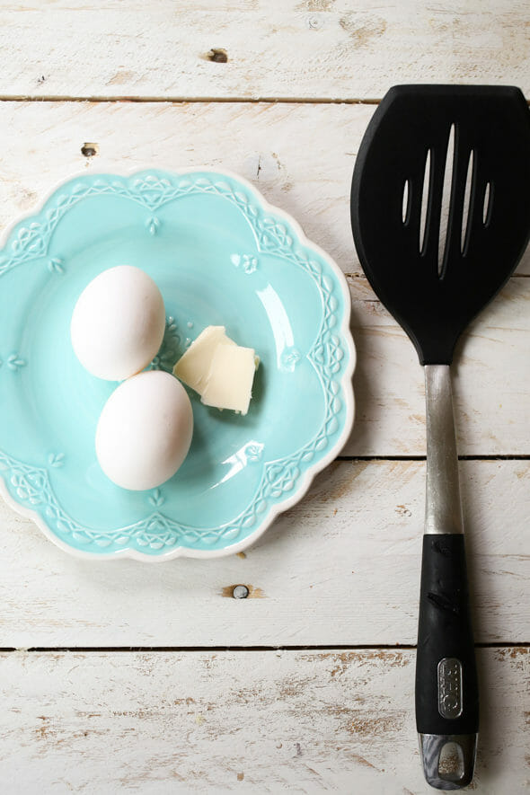 - Non-stick pan – Use a bigger pan than you think you’ll need. Or, even better, an electric skillet. I know, I know, you have visions of the perfect little round eggs and think it’s going to happen in that tiny skillet you got in your wedding pots and pans. I can tell you from a lot of first-hand experience that it’s SO much easier to flip eggs when you have plenty of room. So bring out the big guns–it’s worth it, I promise. And if you want your perfect eggs, you can always use egg or pancake molds (this is just an example–there are lots of different options and shapes!).