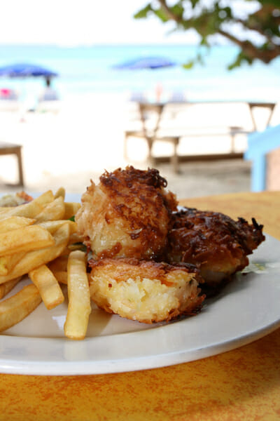Lunch time is always great in Anguilla because the island is covered in “Beach Bars.” They’re fun little restaurants right on the sand with walk up service and casual beachy food. At Roys Bayside Grill, I had Fried Snapper with Tartar Sauce. (For a light, flaky fry, try Kate’s Beer-Battered Fish)