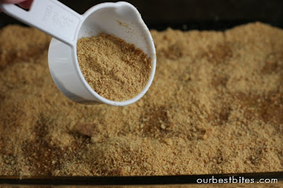 - Place your prepared graham crusts on a baking sheet and distribute the filling mixture evenly among them.