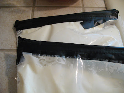 - 1. In a large bowl, combine sugar, milk, whipping cream, and vanilla. Have one of your larger little helpers hold open one quart-sized bag and pour half of the mixture into the bag and zip shut, squeezing out all the air. Use duct tape to tape the opening shut (we actually, in a pinch, used electrical tape and it was fine!). Repeat with second bag.
