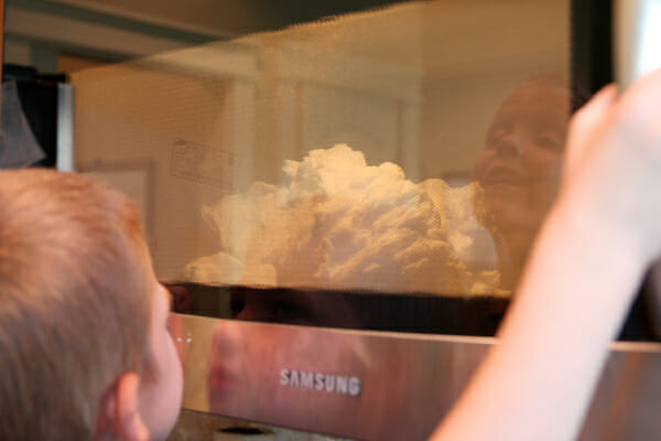 Start your microwave for a couple of minutes on high power. You don’t need to let it run that whole length of time, but you can just stop it when you need to. Want to see what happens?? It’s a little hard to see through my microwave door, but check it out (and ignore me when I say you need to turn your microwave turntable off, that’s for if you’re trying to video this experience:))