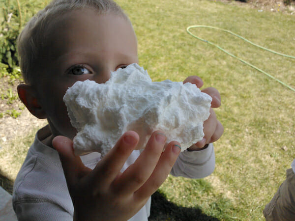 I don’t know how it does it- but it starts growing! Sometimes the “clouds” are seriously HUGE, and other times they are sort of wimpy. I’ve noticed generally, the fresher the soap (as in the more recent I have purchased it) the bigger the result. We’ve done this a million times and my kids still get a kick out of it.