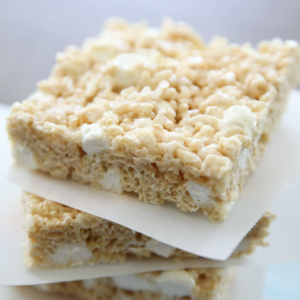 Rice Krispie treats are everyone’s favorites. A staple for just about any event from parties to family nights. But not all rice krispie treats are created equal! We love them so much we have an entire section of our index dedicated to them. Everything from Toasted Coconut-Lime to Smore’s and Salted Caramel. Today’s recipe is probably the one I use the most, because it’s scaled for a huge batch, that’s still doable at home. And even though these are basic “plain” rice krispie treats, they’re also perfect. Too often recipes fall short on the marshmallow to cereal ratio and end up with treats that are either too gooey and hard to chew, or too dry and they scrape up the top of your mouth. These Large Batch Rice Krispie Treats have the perfect ratio and I’m going to share LOADS of tips today on how to do them well. This large batch is perfect for bake sales, fundraisers, parties and potlucks, any time you need either BIG rice krispie treats, or simply lots of them!