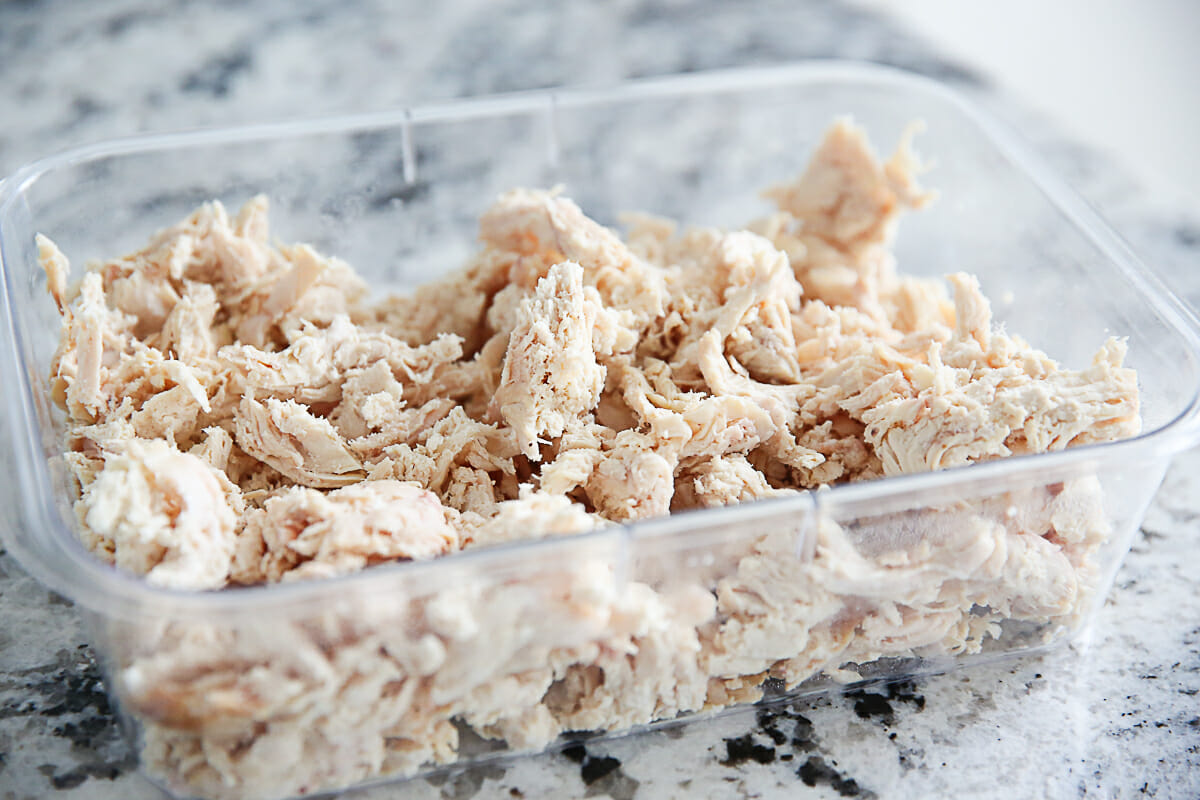 - Cooked chicken, shredded – Leftover chicken breasts work well, or rotisserie chicken. See notes below for using raw chicken.