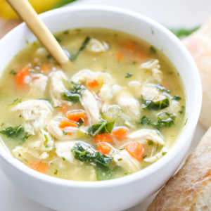This spin on traditional chicken soup hits all the right notes with tender chicken and vegetables, hearty and comforting rice, and a finish of bright fresh lemon juice for an unexpected, yet delicious twist. Lemon Chicken Soup with Rice is the comfort in a bowl! Try it with a grilled cheese sandwich, or a slice of crusty bread for dipping. I also have an easy tip for a creamy version of this soup, shared below!