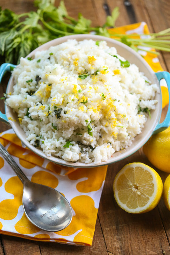 One of my favorite old-, old-, old-school Our Best Bites recipes is our Lime-Cilantro Rice. I love it with tacos, I love it with burritos, I love it cold from the fridge at 11:00 at night. But the other night, I wanted something a little different to serve with fish with some Italian flavors, so I took some of the same principles from the Lime-Cilantro Rice and this happened. It’s bright and springy and perfect to serve with fish or grilled chicken or with your feelings out of the Tupperware container at the end of a long day. (Carbs are my love language, alright?)