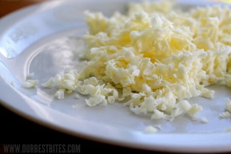 Grate the frozen butter (a food processor will make the job even easier!) Take a picture because I have determined that grated butter is one of the prettiest, most photogenic things ever in the history of the universe. The fact that I find grated butter so pretty probably says something about me.