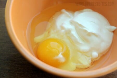 In a small bowl, combine the egg and sour cream…
