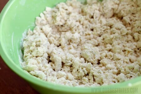 Toss the grated butter into the flour mixture and use your fingers to combine the mixture so it appears like coarse meal.