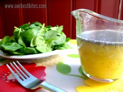 When we spend so much time outside in the heat, I never really want to eat much, and I definitely want something light and fresh. In a few days, I’m posting a yummy little salad that my sister-in-law Stephanie made a long time ago when we were both newlyweds. I couldn’t remember the salad dressing recipe, but I remembered what it was like, so I did a little experimenting. I love, love, love how light and fresh this dressing is–it totally brightens everything on the plate and is perfect for a spring or summer salad.