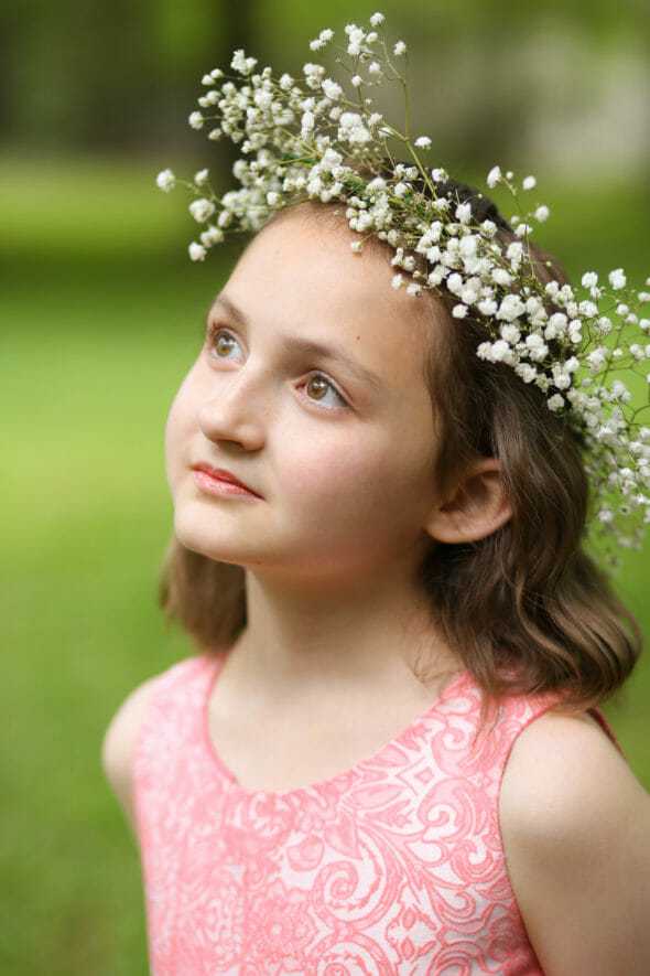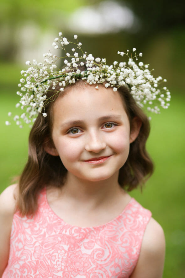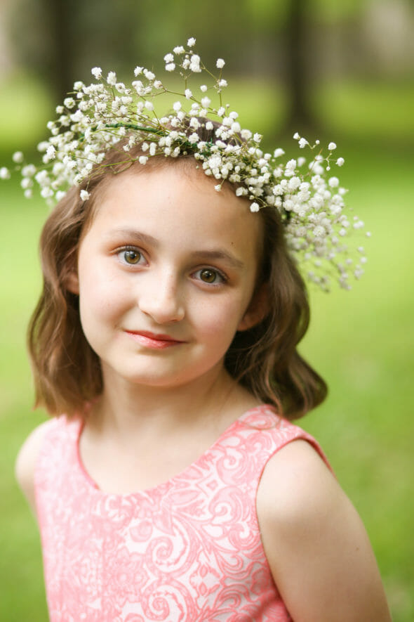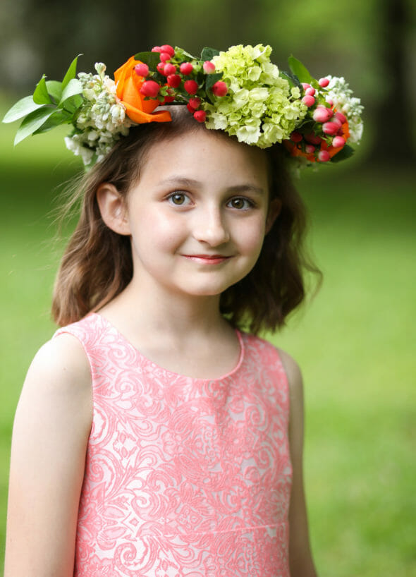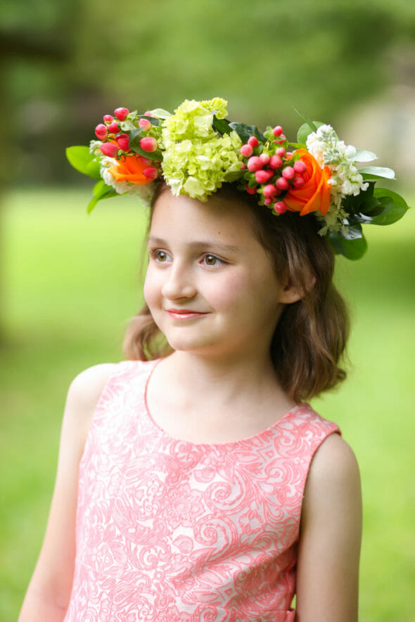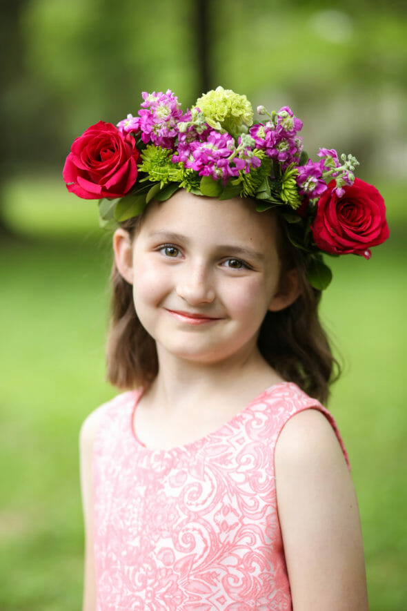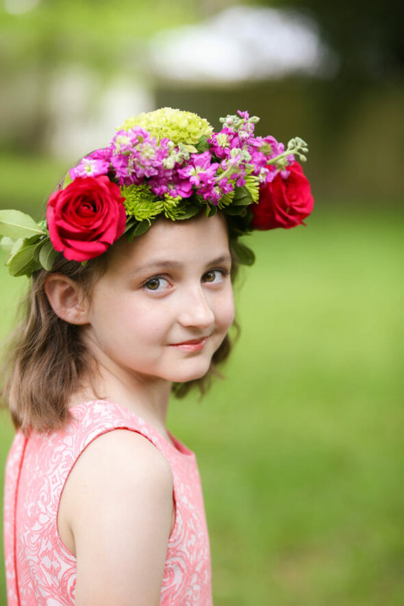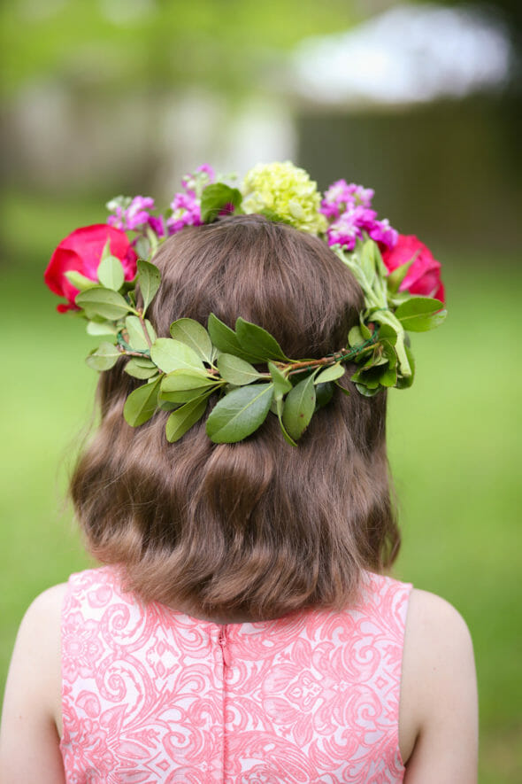3. Think about Scale. Some of the crowns I made were actually a little too big for my daughter–I made them with older girls in mind, but the whole tornado situation complicated things. If you have a younger daughter, choose smaller flowers so the crown doesn’t overwhelm her. You can still choose roses and hydrangea, just pick smaller ones, you know?