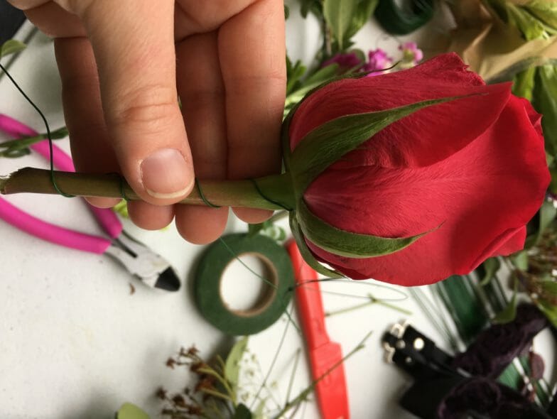 Now…if you’re arranging flowers all the way around the crown, go ahead and wrap the whole wire in floral tape.