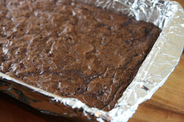 - You’ll start off with a pan of baked brownies.