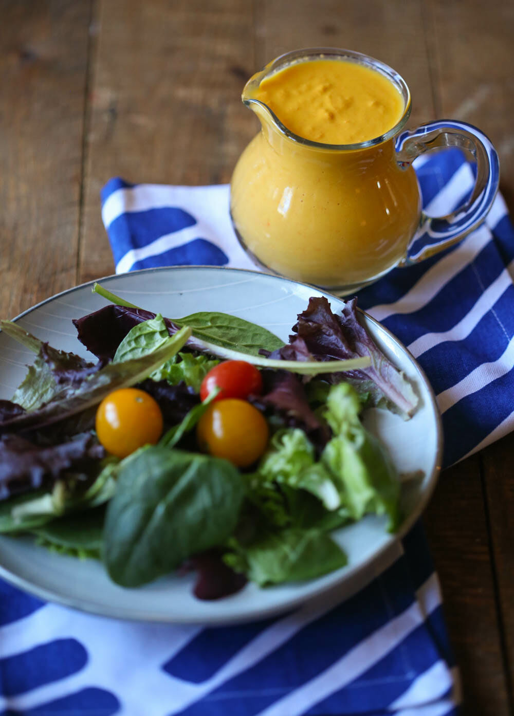 - This dressing has a natural thickness and rustic texture thanks to the blended carrots. While not overly thick, it is substantial enough to cling to greens and vegetables nicely. The carrots also provide a beautiful orange color, making it a vibrant addition to salads or grain bowls.