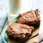- Whip frosting until fluffy, spread over cooled brownies, and slice into squares.