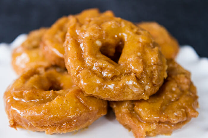 - While the doughnuts are still hot, dip the side with the deepest cracks deeply into the pumpkin glaze. Allow to cool on a wire rack for 15 minutes before serving. Makes 12-15 doughnuts.