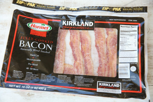 - Cooked bacon slices – I almost always have a bag of fully cooked bacon from Costco in my fridge which makes it super easy to whip this up.