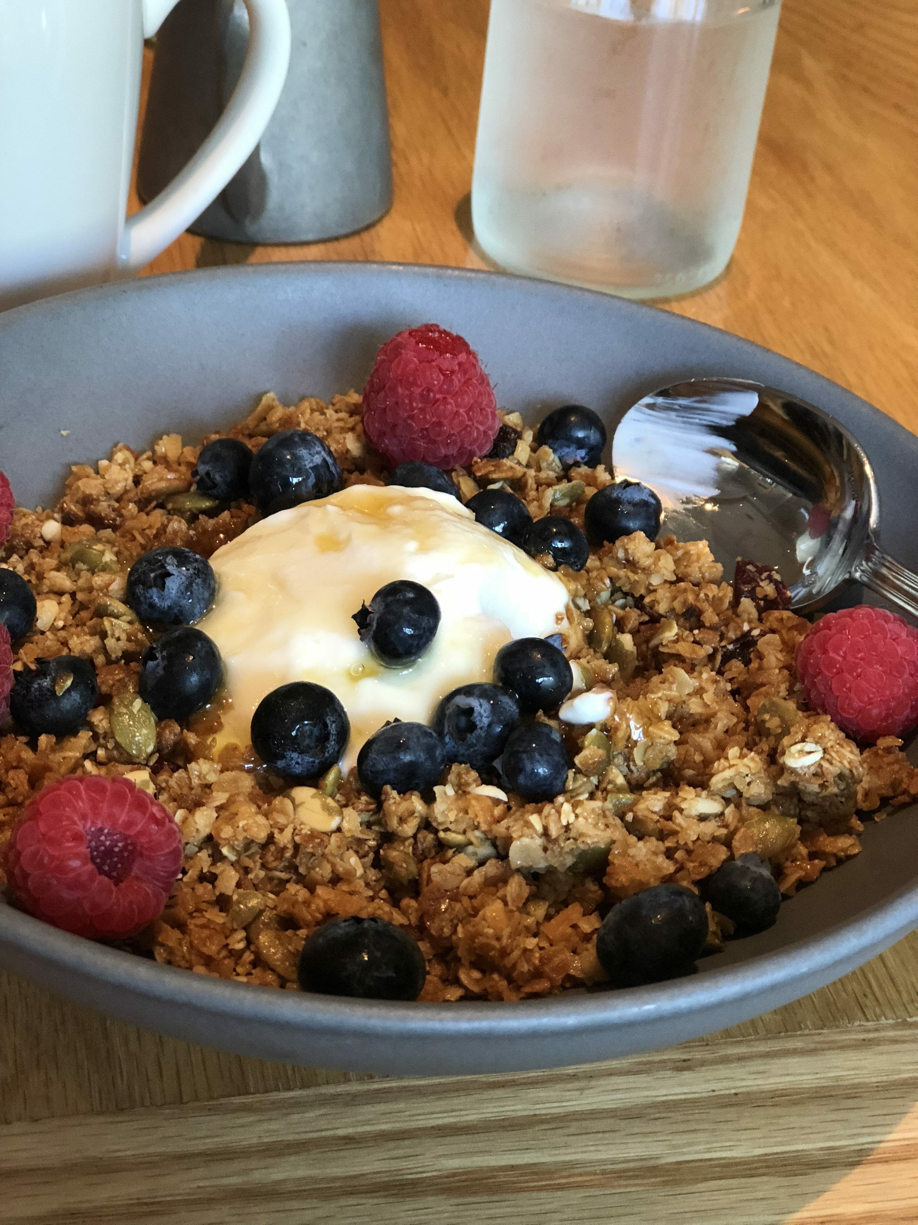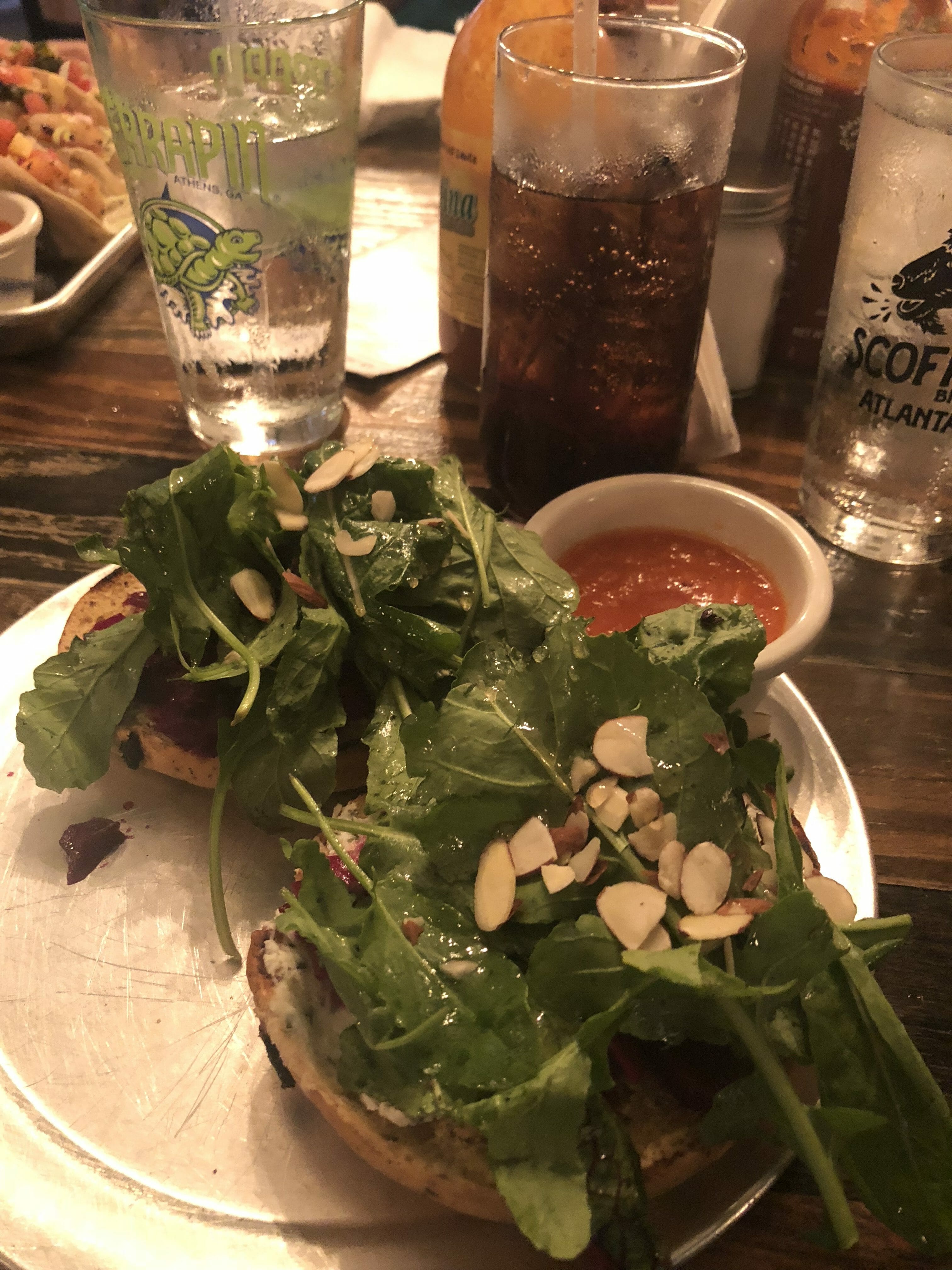 The location was really cool and the food looked good, but most of us did not love what we got. I got the Local Bagel (a sandwich where everything was locally sourced), but the herbs that were in the goat cheese tasted a little too Christmas-y (not really what I was after on a hot, hot day in June) and the beet bruschetta tasted like it was made from canned beets. I couldn’t eat it. Someone else got the Chicken and Waffle Gyro and said the same thing…it was a weird combination of flavors, and not in a good way. The one person in our party who liked what they got had the Bacon Brunch Bowl.