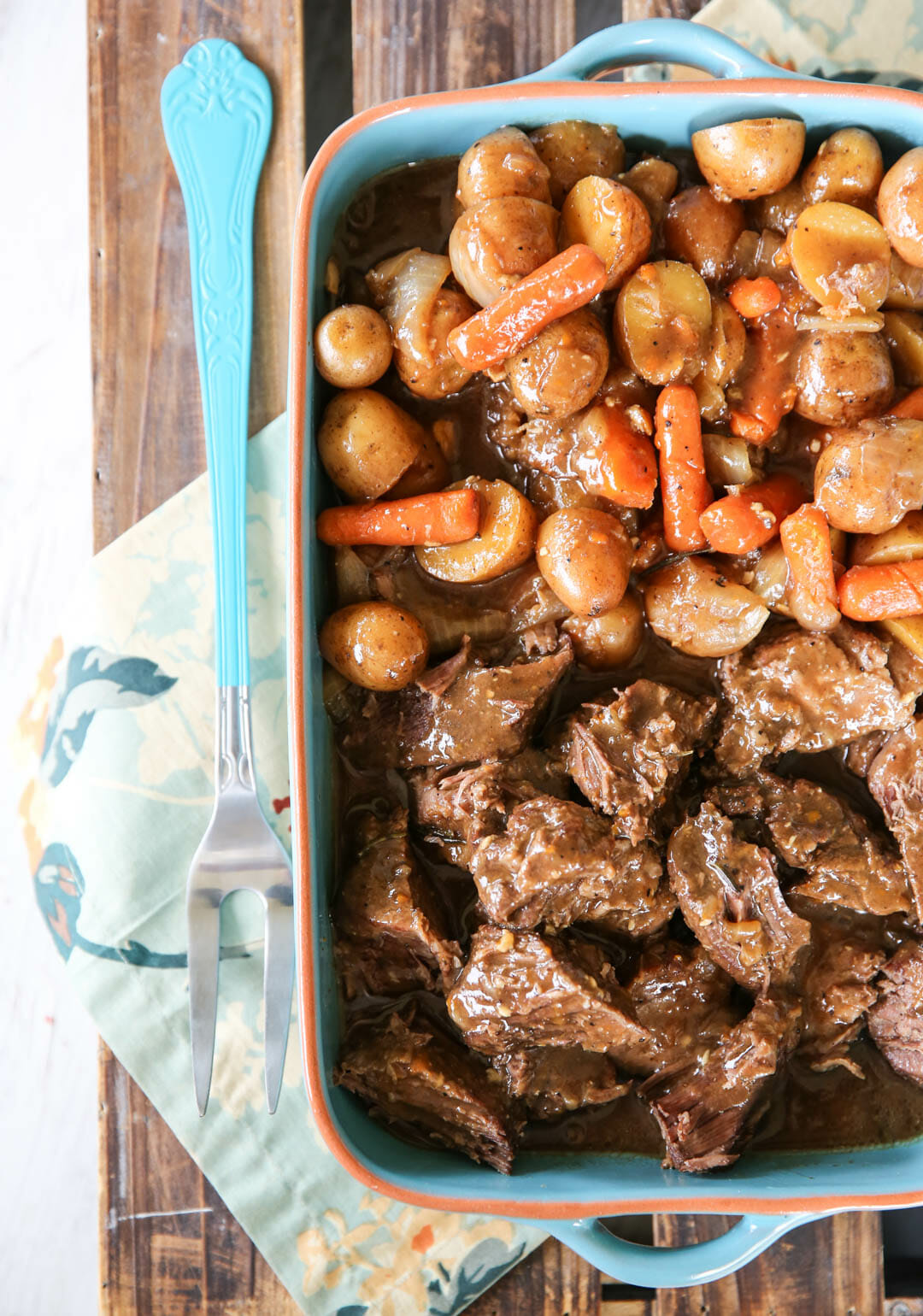 It’s been about a year and a half since I sat down here at this same computer and started writing a blog post about pot roast. But that blog post quickly took a turn and morphed into something else. If you need a good cry, click here to go read it. It dawned on me the other day that I never did actually share my pot roast recipe recipe and as I whipped it up a couple weeks ago on a rainy Sunday afternoon, I figured I should make good on that promise.