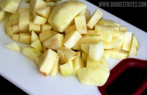 Chop up two apples (I love Fuji apples, but Granny Smiths would also work).