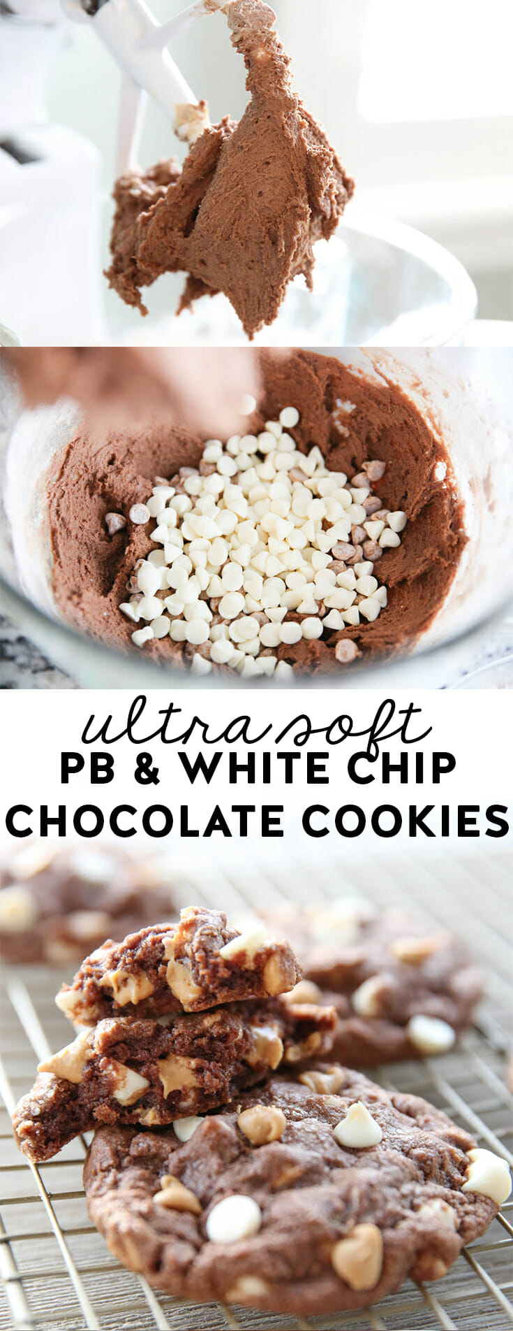 And then enjoy 1 or 3 or 7 of these amazing cookies that are soft and chocolaty, but not overly rich, and kind of like brownies in the center and studded with peanut butter and white chocolate. No wonder they’re so many people’s favorites- they’re kind of amazing.