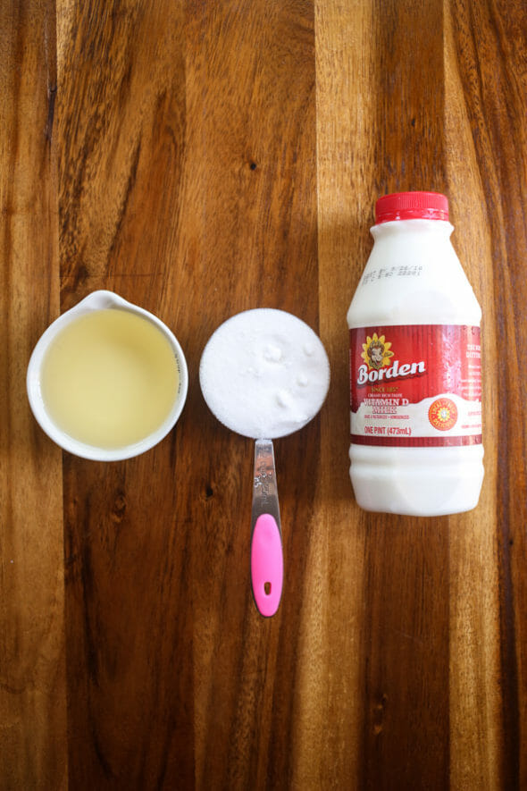- In a large pot, heat milk, sugar, and oil to just boiling, then remove from heat.