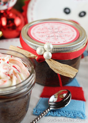Just give it a nice swirl, being careful to not go above the top of the jar, and then sprinkle some crushed candycanes on top.