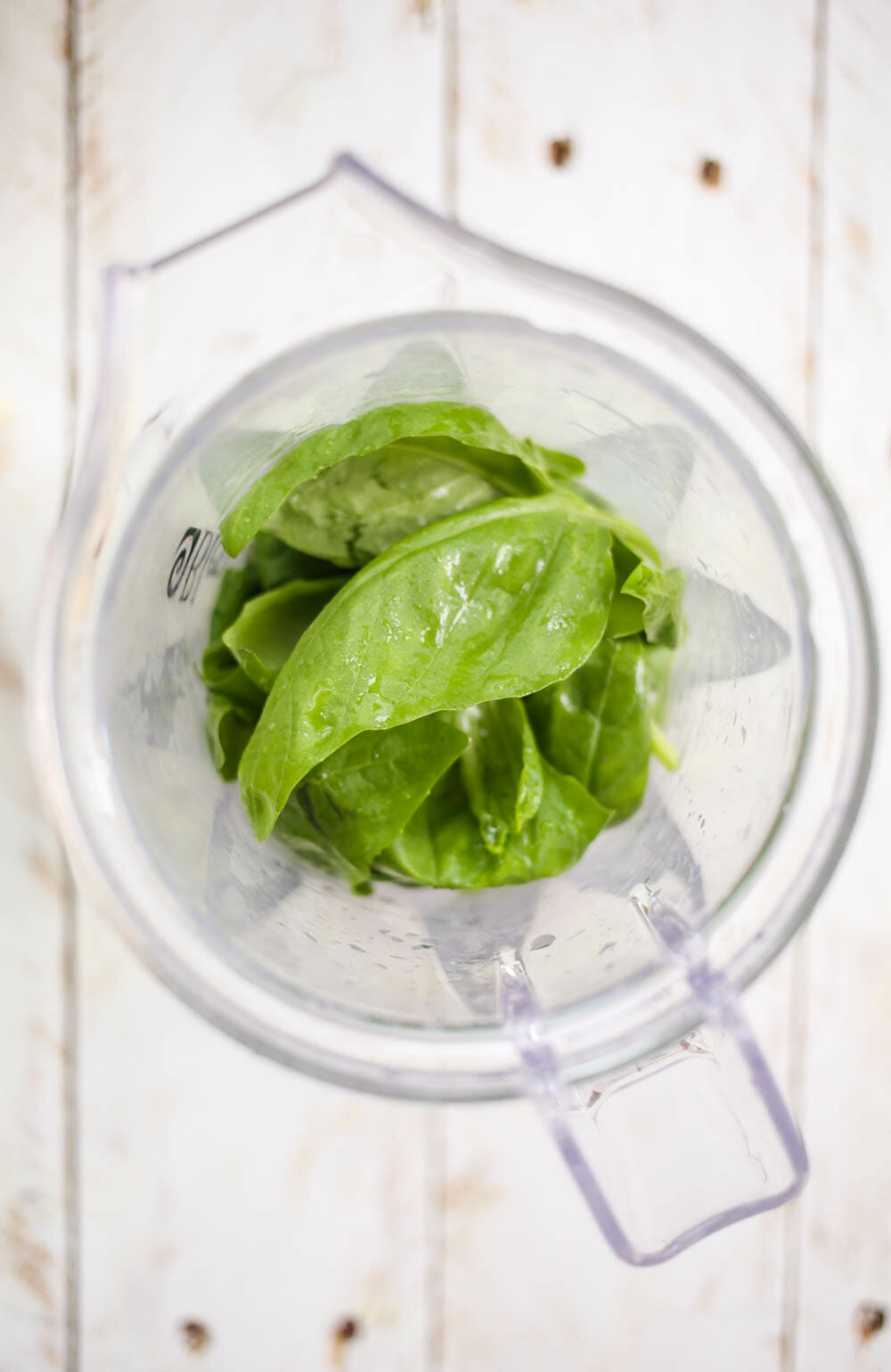 Place the garlic and basil in a mini blender jar or mini food processor.